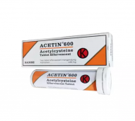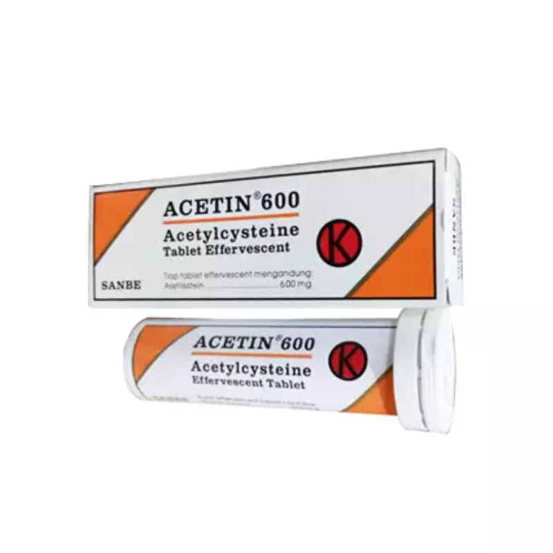 ACETIN 600 TABLET EFFERVESCENT mengandung zat aktif Acetylcysteine, obat yang termasuk agen mukolitik. Obat ini digunakan untuk mengatasi penyakit pada saluran pernapasan yang ditandai dengan hiperseksresi dahak/mukus, misalnya bronkitis akut atau kronis, emfisema paru, mucoviscidosis, asma bronkial yang disertai kesulitan pengeluaran dahak, obat ini juga digunakan untuk mengobati kasus toksisitas akibat over dosis paracetamol. Dalam penggunaan obat ini harus SESUAI DENGAN PETUNJUK DOKTER.