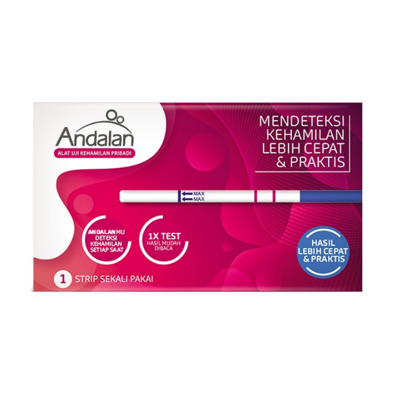 ANDALAN STRIP UJI KEHAMILAN merupakan strip uji kehamilan yang digunakan untuk mendeteksi kehamilan secara cepat dan akurat. Strip ini dapat memperoleh hasil dalam waktu 1 sampai 3 menit dengan tingkat akurasi 99%. Andalan Strip Uji Kehamilan bekerja dengan cara mendeteksi hCG (human Chorionic Gonadotropin), yaitu suatu hormon yang diproduksi oleh sel telur dimana sudah dibuahi dan menempel di dinding rahim, dimana hormon ini akan meningkat dua kali lipat ketika hamil di dalam urin.