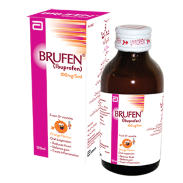 Brufen suspensi Untuk meredakan nyeri : Dewasa 2 sendok teh. Untuk menurunkan demam & meredakan nyeri Anak 6-12 tahun 2 sendok teh, 3-7 tahun 1 sendok teh, 1-2 tahun ½ sendok teh. Semua dosis diberikan 3-4 x perhari.