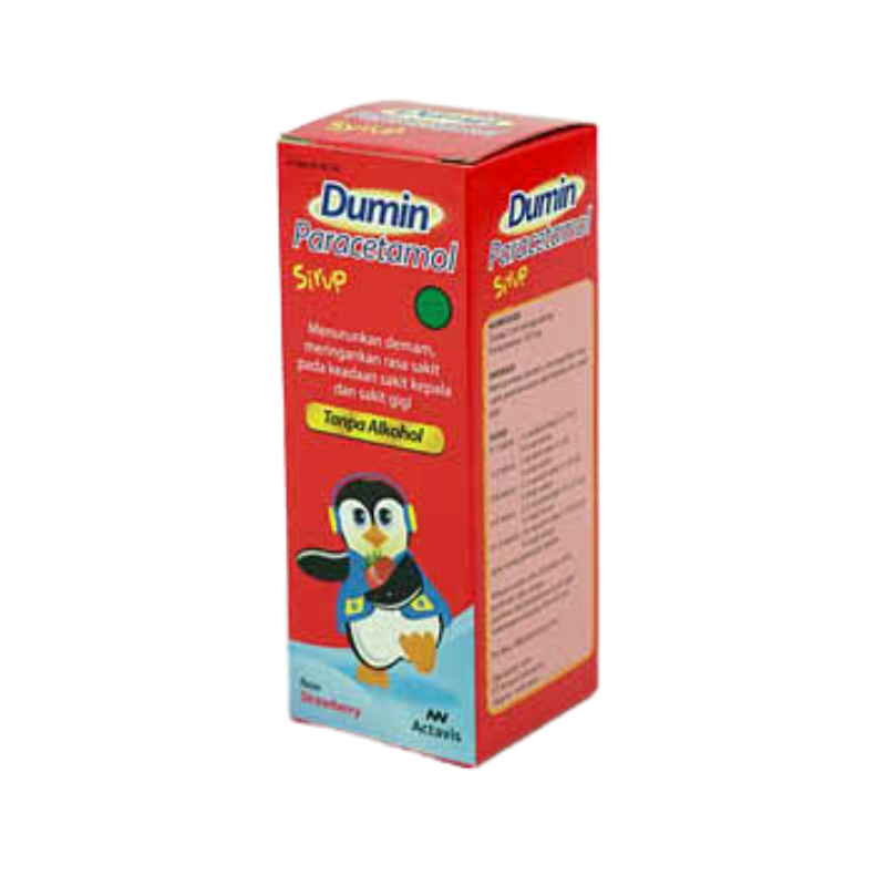 DUMIN SIRUP merupakan obat dengan kandungan Paracetamol 500 mg. Obat ini dapat digunakan untuk meredakan nyeri seperti sakit kepala, sakit gigi, nyeri otot dan demam.