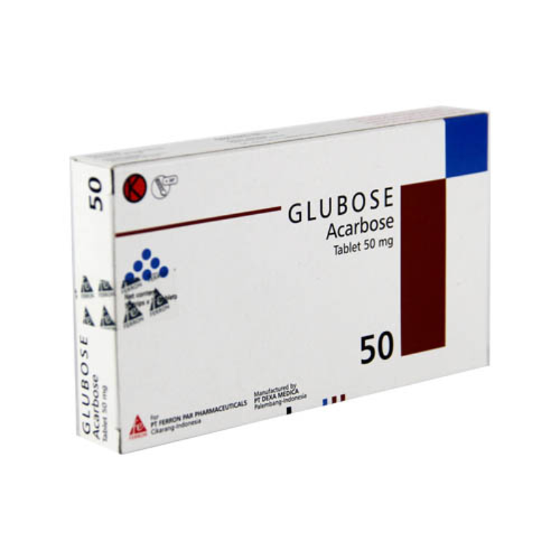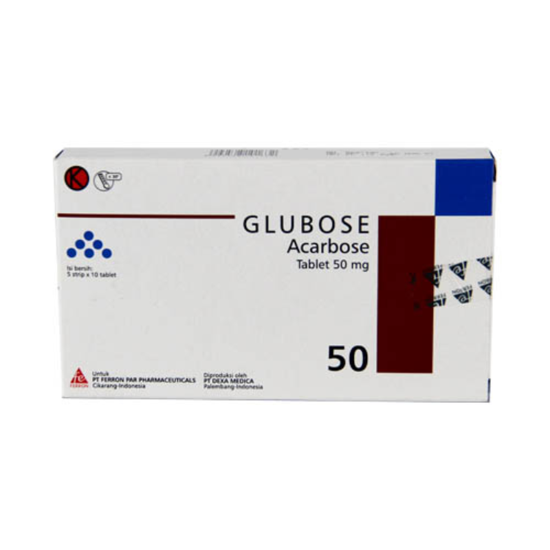 GLUBOSE adalah obat yang mengandung Acarbose 50 mg. Acarbose digunakan untuk pasien diabetes melitus tipe 2 jika kadar gula darah tidak cukup dikendalikan dengan diet, latihan fisik dan penurunan berat badan saja. Obat ini termasuk dalam golongan penghambat alfa glukosidase. Acarbose bekerja memperlambat absorbsi glukosa dalam usus halus, sehingga memberikan efek menurunkan kadar glukosa darah sesudah makan. Dalam penggunaan obat ini HARUS SESUAI DENGAN PETUNJUK DOKTER.