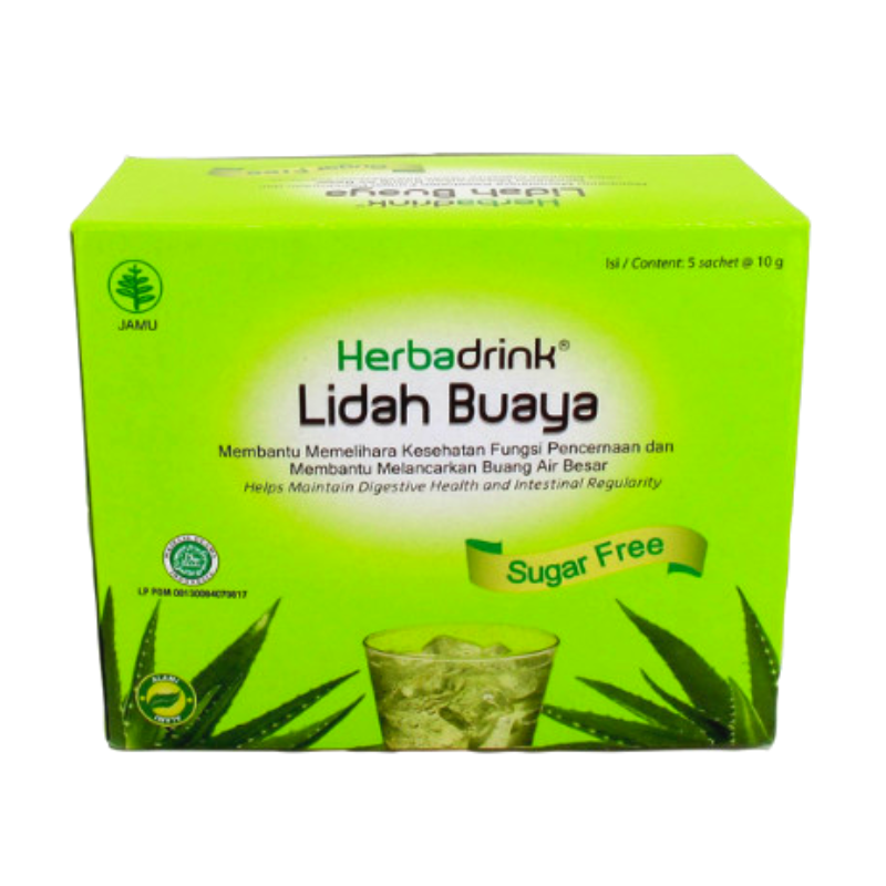 HERBADRINK LIDAH BUAYA SUGAR FREE berkhasiat membantu memelihara kesehatan fungsi pencernaan dan membantu melancarkan buang air besar.