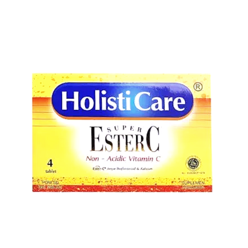 HOLISTICARE ESTER C TABLET merupakan suplemen mengandung Vitamin C, diproses secara lamiah sehingga menghasilkan metabolit yang dapat meningkatkan efisisensi penyerapan dan penyimpanan dalam tubuh. Suplementasi vitamin c untuk membantu memelihara daya tahan tubuh