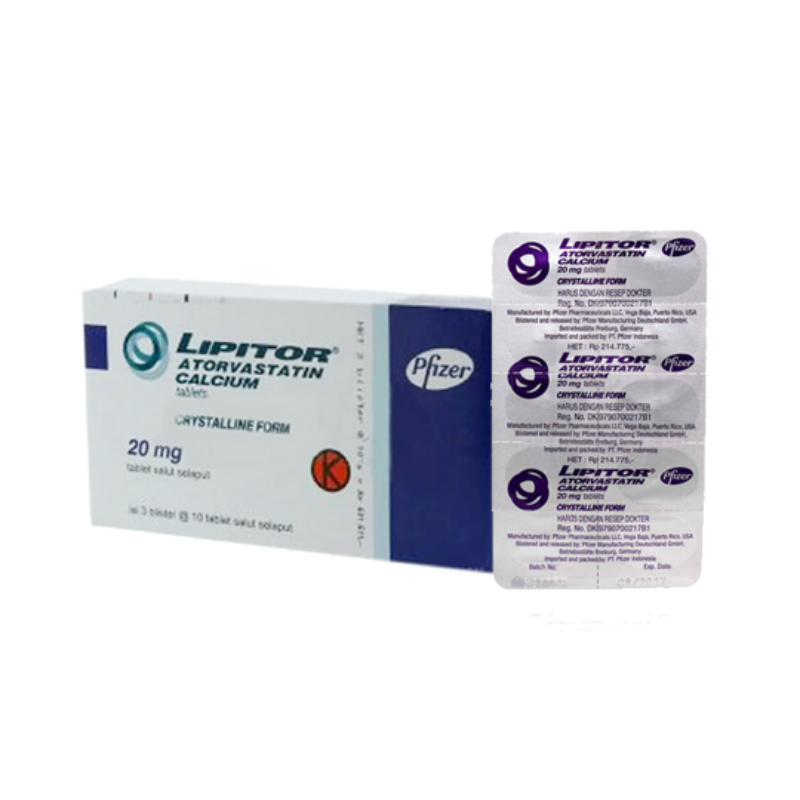 LIPITOR 20 MG 10 TABLET adalah obat yang mengandung Atorvastatin. Atorvastatin merupakan jenis obat golongan penghambat HMG-CoA reduktase atau disebut statin. Obat ini digunakan sebagai tambahan diet untuk menurunkan peningkatan kolesterol total, kolesterol LDL, apo-B & trigliserida pada pasien dengan hiperkolesterolemia primer, hiperlipidemia kombinasi (campuran) & hiperkolesterolemia familial heterozigot & homozigot bila respons terhadap diet & tindakan nonfarmakologis lainnya tidak adekuat. Dalam penggunaan obat ini HARUS SESUAI DENGAN PETUNJUK DOKTER.