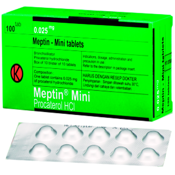 MEPTIN MINI 25 MCG 10 TABLET merupakan obat yang digunakan untuk meringankan gejala-gejala asma dengan cepat pada saat serangan asma berlangsung dan mampu mengobati Penyakit Paru Obstruktif Kronik (PPOK).
