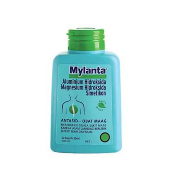 MYLANTA SIRUP 50 ML merupakan obat dengan kandungan Aluminium hidroksida kering, Magnesium Hidroksida, dan Simetikon dalam bentuk sirup. Obat ini digunakan untuk mengurangi gejala-gejala yang berhubungan dengan kelebihan asam lambung, gastritis, tukak lambung, tukak usus 12 jari, dengan gejala-gejala seperti mual, nyeri lambung, nyeri ulu hati. Kombinasi Aluminium hidroksida dan Magnesium hidroksida merupakan antasida yang bekerja menetralkan asam lambung dan menginaktifkan pepsin, sehingga rada nyeri ulu hati akibat iritasi oleh asam lambung dan pepsin berkurang. Disamping itu, efek laksatif dan Magnesium hidroksida akan mengurangi efek konstipasi dari Aluminium Hidroksida.