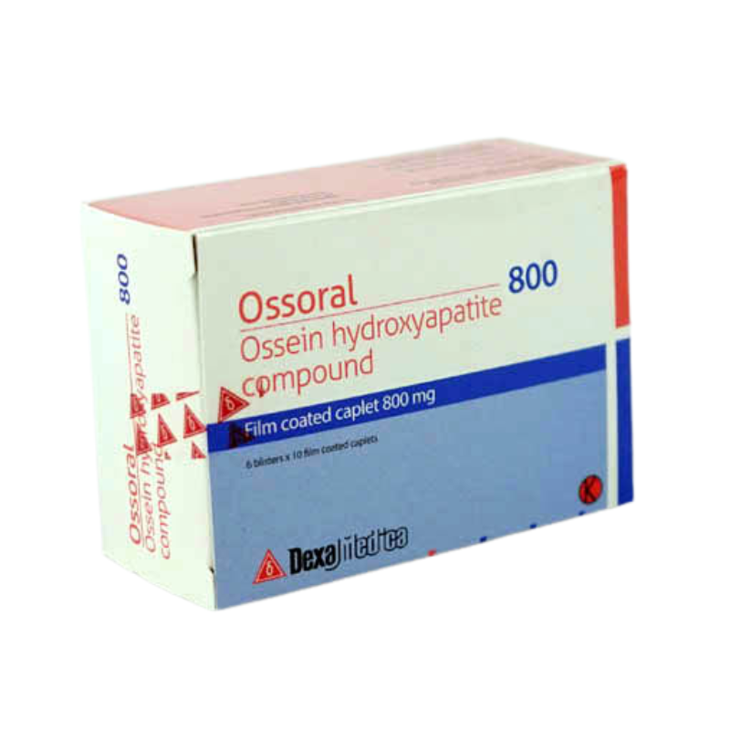OSSORAL merupakan obat dengan kandungan Ossein hydroxyapatite, Ca, Phosphorus dalam bentuk kaplet salut selaput. Obat ini digunakan untuk osteoporosis primer, osteoporosis sekunder (karena pengobatan kortikoid, heparin, imobilisasi, rematoid artritis, penyakit hati dan ginjal, hiperparatiroid, osteogenesis imperfecta), pengobatan awal pada pasien dengan meningkatnya risiko osteoporosis, mengatur keseimbangan kalsium dan fosfat selama kehamilan, menyusui dan patah tulang. Dalam penggunaan obat ini harus SESUAI DENGAN PETUNJUK DOKTER.