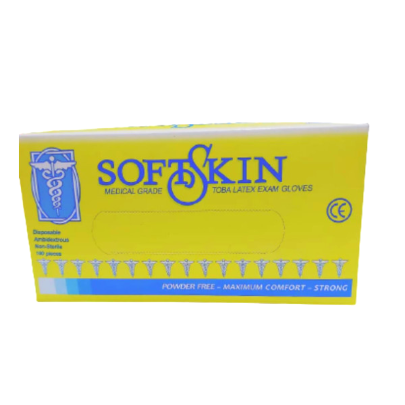 Sarung tangan sorfskin toba latex exam gloves non powder medical grade, disposable, ambidextrous, non-sterile, size M isi 100 pcs/box (50 pasang)